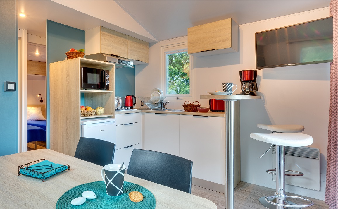 Le Camping La Grande Plage propose un large choix de mobil-homes pour tous les budgets. Les mobil-homes disposent d’une cuisine équipée, d’un séjour avec télévision et coin repas, d’une salle d’eau avec douche et lavabo, de wc et de bien d’autres atouts. Véritables petits cocons, nos mobil-homes sont modernes, spacieux et décorés avec goût.